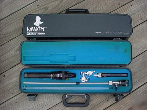 HAWKEYE BORESCOPES, RIGID, 17" AND ALL THE EXTRAS. You are getting the two 17" borescopes. One is used in good condition, the other is almost new and in outstanding condition. Borescope: used in good condition. MTH 2991 , right angle HH3089 and eyepiece. and protective sleeves. Borescope: used in like new condition. MTH 2130 , right angle HH3060 and eyepiece. Two Hawkeye NOVA lights, one new, one needs new battery, two stinger chargers, two mini mag lights ( like new) One Sony Digital camera mount, Large Lab case (locking) in great condition with keys. Two smaller cases, both locking and keys Option of Sony digital camera for an extra 100$. These were taken out of service from a industrial location that has closed and these are in good and excellent condition. The tubes are 17" long and approx .250 in diam. , any other questions, please ask. You may also check out; The retail for all of this equipment is over $4000. Please ask any questions, I will be glad to answer. (Like new hawkeye borescope, ,cases, extras, 2 scopes was posted and is owned by: Rene Hurst) |