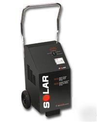 Featuring the Clore Automotive Solar 1330 Commercial 12 Volt Charging system Solar 1330 offers commercial 12 volt charging power in a convenient and economical unit. It features Clore's new Transoid charging technology which delivers more efficient charging, lower power consumption, quieter operation and longer product life expectancy. The charger comes with color coded meters, E-Z View (tm) angled control panel, slim line chassis and Comfort Walk (tm) extended handle to provide ease and convenience. Other features include * 40 high, 15medium and 2 amp low charging rates for use on a wide variety of batteries * 200 amp engine starting assistance * Automatic-reset circuit breaker technology protects against overloads * Heavy-duty transformer and multi-diode rectifier for long life in professional settings -Manual/Timer/Automatic: Manual -12 Volt Charging Amps UL & CSA Rating: 40/15/2 -12 Volt Engine Starting Amps UL & CSA: 200 Transformer/Rectifier Warranty: 5 Years This item is new from the factory with paperwork This tool is new in manufacturer's box with paperwork. Products that have been used, but require warranty service, should be returned to us. We will handle warranty returns for the life of the warranty according to manufacturers instructions. Warranty claims that are determined to be invalid by the manufacturer will be denied. (Clore solar commercial wheel charger w/ engine start was posted and is owned by: Bonita Beard) |
