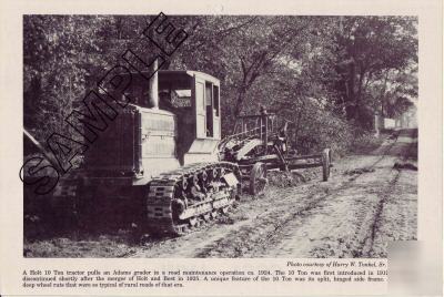 “SAMPLE†will not appear on the print you purchase ... it is only on the scanned image. This is an Original Print, meaning that this is the actual page carefully removed from a vintage Collectors Series Antique Equipment Calendar, not a cheap copy. It has a calendar month printed on the reverse side. The documentation at the bottom of this print reads: “A Holt 10 Ton tractor pulls an Adams grader in a road maintenance operation ca. 1924. The 10 Ton was first introduced in 1919, but was discontinued shortly after the merger of Holt and Best in 1925. A unique feature of the 10 Ton was its split, hinged side frame. Notice the deep wheel ruts that were so typical of rural roads of that era.†Quality of this calendar print is mint, like new, printed on excellent quality paper. .... any questions at all, please feel free to contact me. I try to be prompt with my email responses. (Holt 10 ton tractor pulls adams grader c.1924 print was posted and is owned by: Bessie Palmer) |