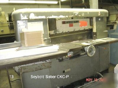 We are a full-line supplier / distributor of all of pre-press, printing and bindery equipment including PC, Mac and laptop computers Whether you are in the market to purchase, sell, or liquidate, or in need of appraisals or repairs of your current equipment, give us a call and let us put our 30+ years of experience to work for you! Harris Seybold 47" "Saber" Model CKC-P Full Power Paper Cutter S/N: 36XX For More Cutter info Click Here Front Operated Power Back Gauge Must be sold immediately...company closure! This cutter must be removed by March 25 2007 This cutter is being sold at the same location as an 1987 Akiyama 640 Bestech also listed on For additional info regarding this item For More Cutter info Click Here Stop by if your in the neighborhood!! Property of Precise Printing Equipment® (Harris seybold 47" "saber" model ckc-p was posted and is owned by: Mallory Burks) |