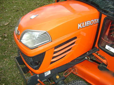 This is a very nice little compact Kubota BX2350 Tractor. It is in good condition. It runs great and has no known mechanical problems. It is hydrostatic drive and 4x4. This unit has power steering, with a mid and rear pto. It has a class 1 three point hitch and hydrolic deck lift. It has a 60" kubota belly mower, and a Cab. It is a 23hp tractor with a very powerful 3 cylinder kubota diesel. The 3 cylinder diesel motor produces lots of torque and runs very smooth. The tractor is in good condition with good paint, and no dents. The hour meter is working and shows 474 hours. I believe the tractor is a 2006 model, but I have listed the serial # incase you want to call your kubota deal and check. This tractor has a Curtis Cab on it. It is a nice cab that comes with a glass windshield, a windshield washer, removable doors, zip in windows, cab lights and a heater. (Kubota BX2350 hst 4X4 with 5' mowerdeck and heated cab was posted and is owned by: Tyrone Gillespie) |
